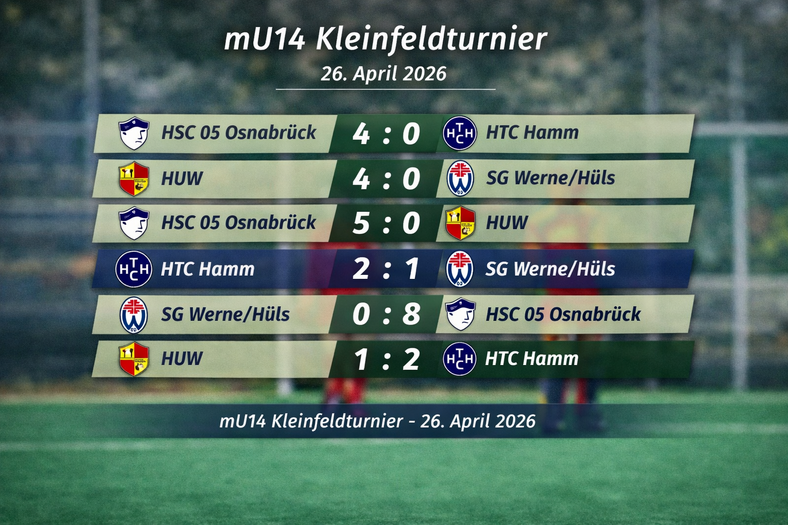 Am heutigen 26. April 2026 richtet der HTC Hamm das nächste Kleinfeld‑Turnier der mU14‑Westfalenrunde aus. Die Voraussetzungen versprechen einen spannenden Hockeytag: Vier Teams treten